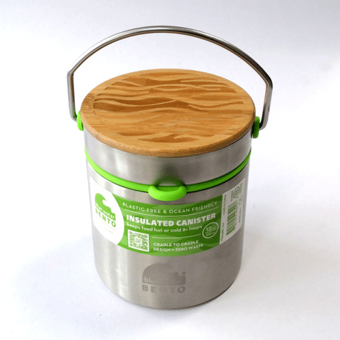 Onze nieuwe Blue Water Bento Insulated Canister met bamboe deksel is uniek, plastic-vrij en biedt uitzonderlijke thermische prestaties, en heeft een vooruitstrevend circulair ontwerp. De vacuüm geïsoleerde 12 ounce container houdt voedsel warm of koud gedurende 8+ uur en is gemaakt van volledig recyclebare en biologisch afbreekbare materialen: roestvrij staal, silicone en bamboe.